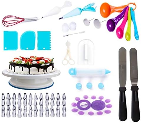 CAKE DECORATING SUPPLIES – Transform your cake decorating skills from an armature to a professional with our complete cake decorating turntable set, brilliant for beginners and or professionals. This 95 pieces cake decorating set has everything you need for any cake decoration occasion including; cake decorating with the children or for special functions like – Parties, Birthdays, Weddings or Anniversary etc. Use our palette knives and our fondant smoother to add extra smoothness to your cake.