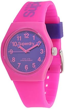 This gents Superdry Urban watch is made from plastic/resin and is fitted with a quartz movement. It is fitted with a pink rubber strap and has a purple dial.