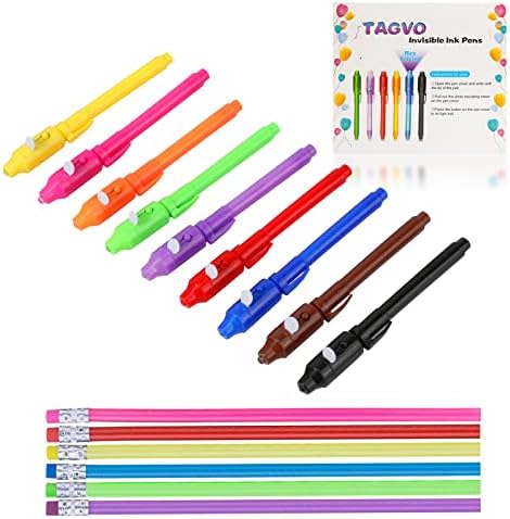 Be the first to review “TAGVO 9x Invisible Ink Pens and 6x Flexible Bendy Pencils 2019 Upgraded Spy Pen with UV Light Magic Marker Goodies Bags Toy for Fun Kids Birthday Party Bag Fillers”