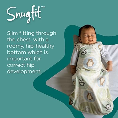 Snugfit: Slim fitting through the chest, with a roomy, hip-healthy bottom to allow your baby to adopt a natural “frog-legged” sleeping position, which is important for correct hip development