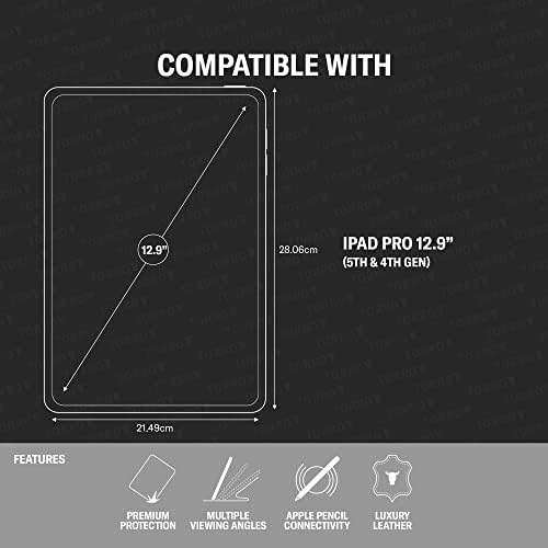 TORRO Tablet Case Compatible With Apple iPad Pro 12.9″ Genuine Quality Leather Stand Cover With [Multiple Viewing Angles] [Wake/Sleep Enabled] 5th/4th Gen – 2021/2020 Release (Black)