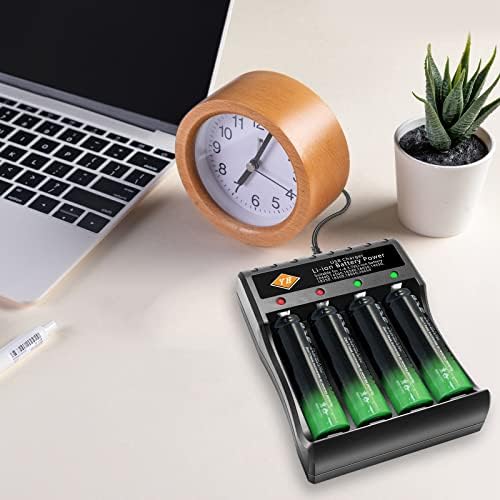 Universal Battery Charger with 4 PCS Batteries, Fast Charging Function with LED Display, 4-slot Smart Battery Charger for 18650 16340 14500 18350 Rechargeable Batteries
