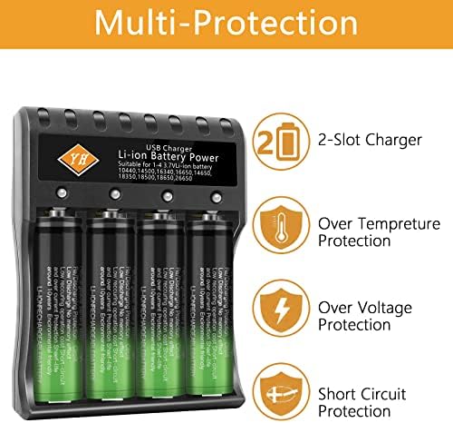 🔋【Safety Performance】 C-TICKCB ROHS certificate. Built-in smart circuit protection to protect the battery from charging safely. When the 18650 charger is short-circuited, fully charged or the positive and negative poles are reversed, its protection function will be.