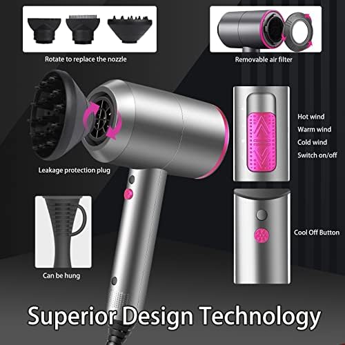 Vigoflix Professional Hair Dryer 2000W Powerful Ionic Hairdryer with 1 Diffuser & 2 Nozzles with 3 Heating, 2 Speed and Cool Button for Different Hairstyles Home Salon Travel Woman Man Kids