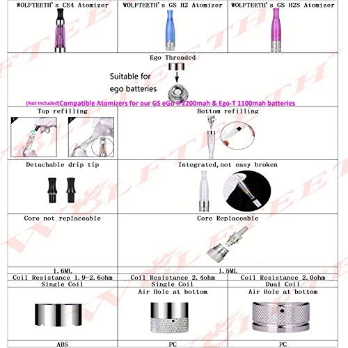 Be the first to review “WOLFTEETH High Power 1100mAh Replacement eGo-T Shisha Pen Battery Electronic Cigarette (0ml Nicotine Free/Black 1016)”