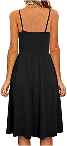 Women’s Summer Beach Dresses Sale Party Elegant Button Summer Seaside Sling Sleeveless V-Neck Solid Color Casual Dress Bohemian Flowy Cruise Holiday Tunic A-line Dress for Ladies Size 8-18 UK A2150