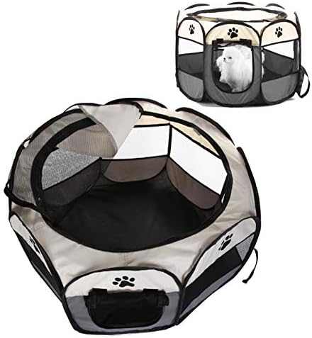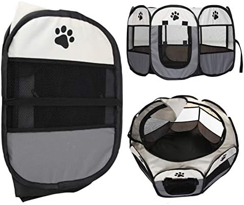 Youyijia Portable Pet Playpen Cat Cage Puppy Playpen Pet Dog Crate 91 x 91 x 58cm Soft Fabric Portable Foldable Pet Indoor/Outdoor (Gray)